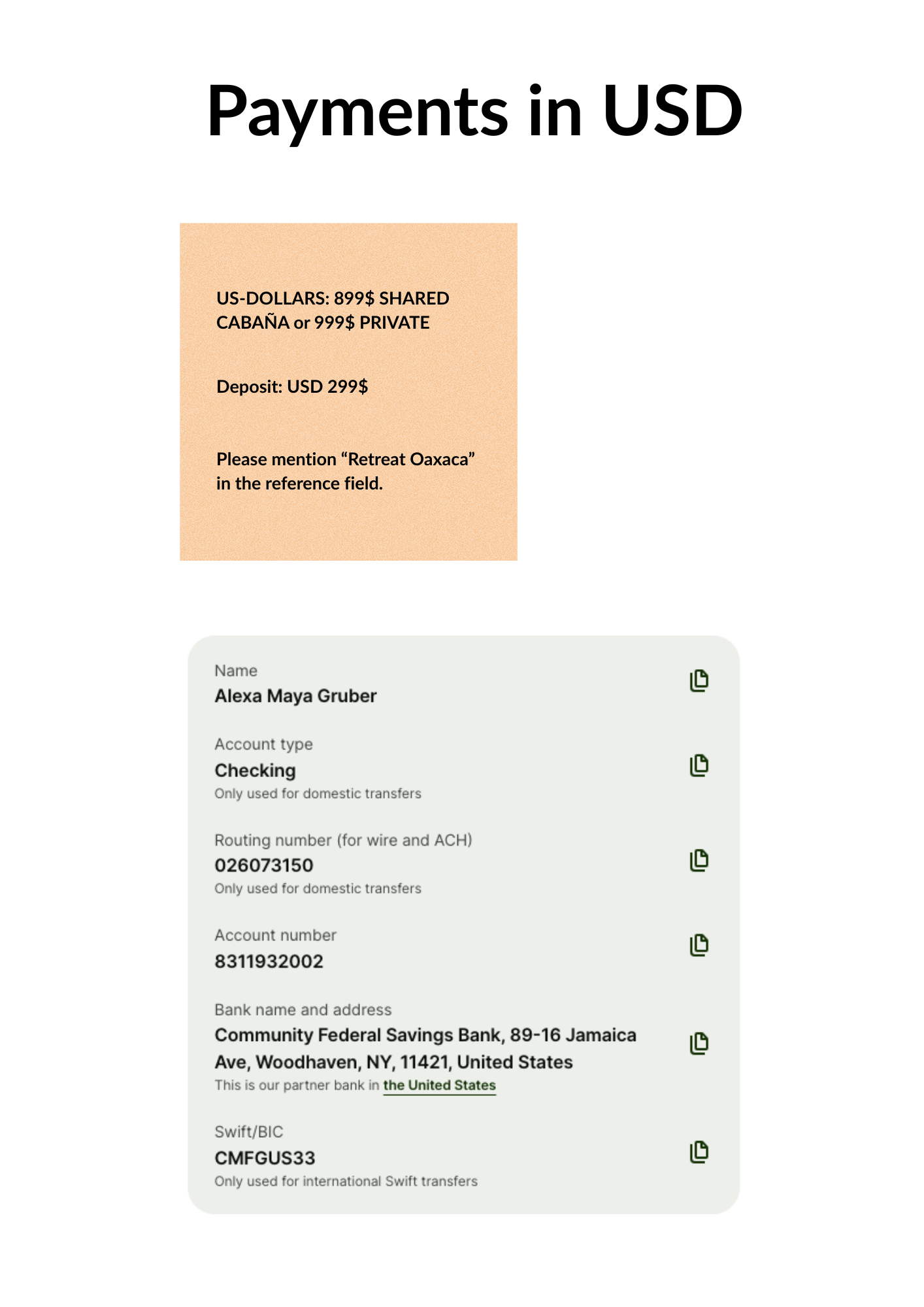 US-DOLLARS: 899$ SHARED CABAÑA or 999$ PRIVATE CABAÑA