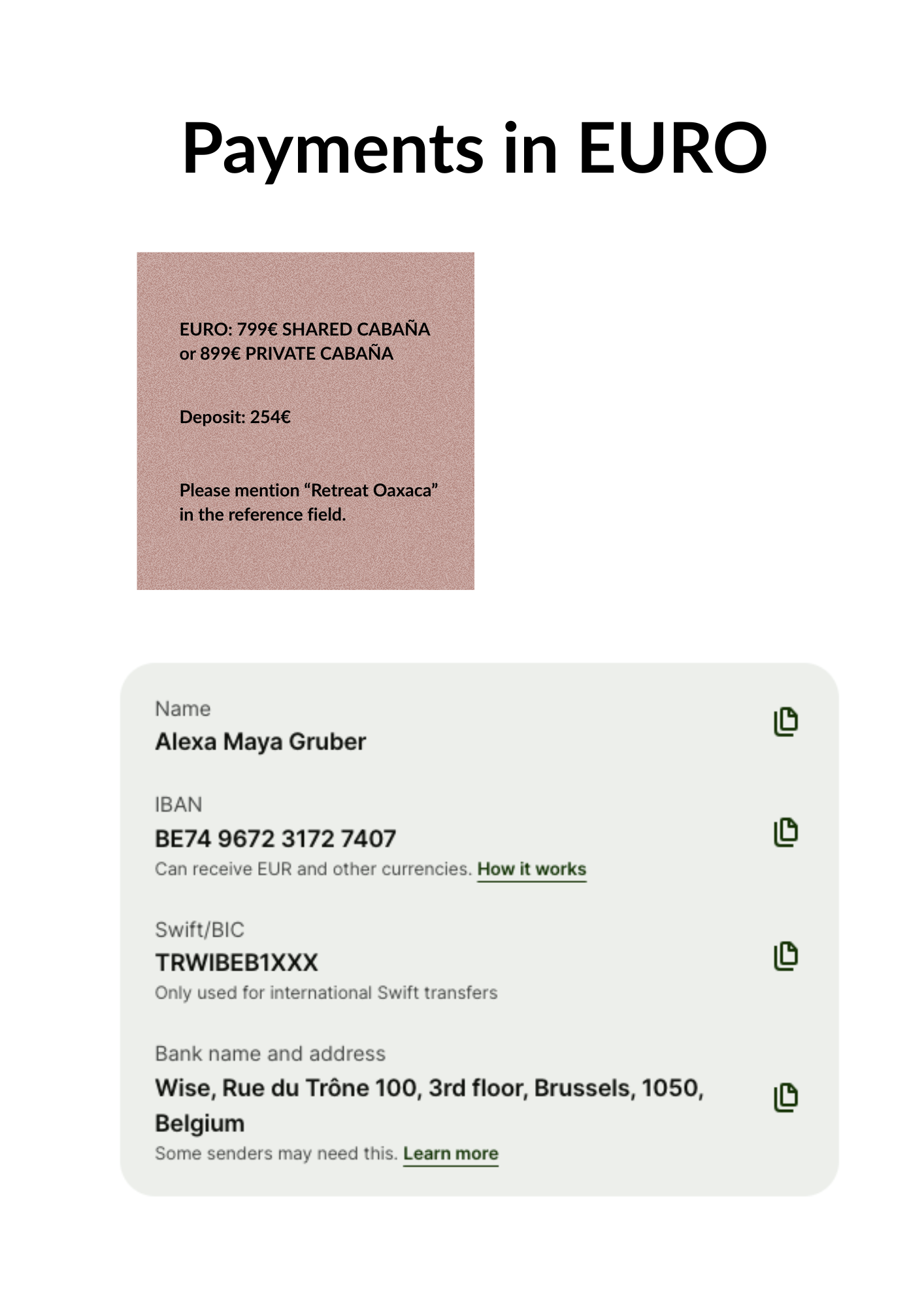 EURO: 799€ SHARED CABAÑA or 899€ PRIVATE CABAÑA